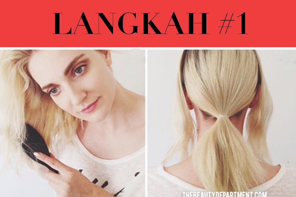 Pastikan rambutmu sudah bersih, kemudian sisir seluruh rambut dan mulailah ikat rambutmu menjadi satu, namun sisakan bagian kiri dan kanan.