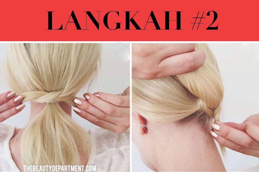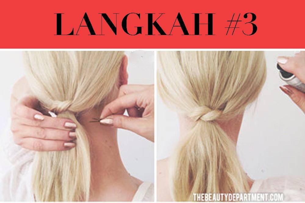 Selanjutnya, ambil kedua bagian rambut yang sudah dipisahkan tadi (rambut sisi kiri dan rambut sisi kanan) lalu ikat diantara rambut yang telah dikuncir tadi. Sisanya kamu bisa taruh dibawah rambut yang dikuncir satu. Untuk menjaganya tetap rapi dan awet jepitlah dengan bobbypin.