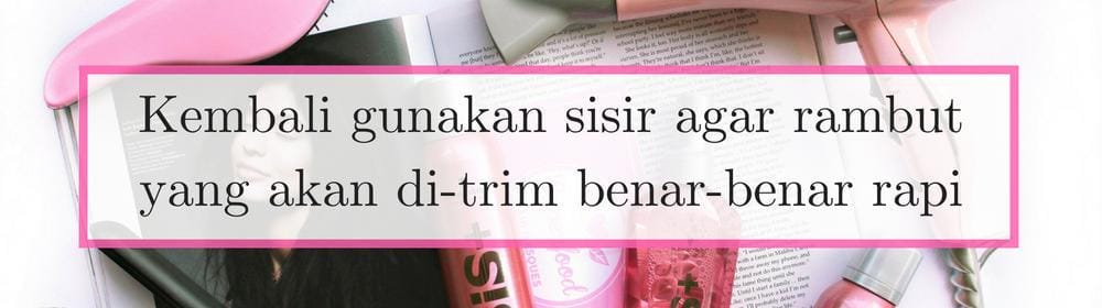 Salah satu cara menjaga rambut agar tetap sehat dan mencegahnya dari masalah bercabang, adalah dengan melakukan trim secara teratur. Trim sendiri berguna untuk memotong ujung rambut sebanyak beberapa sentimeter agar ujung rambut yang kering dan rusak dapat terbuang. Nah, nggak perlu repot ke salon, kamu bisa melakukannya sendiri di rumah kok. Simak caranya di bawah ini yuk!