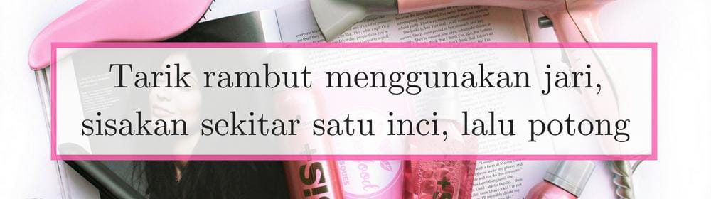 Sebelum menggunakan gunting yang sesungguhnya, coba gunakan jarimu terlebih dahulu. Dengan memakai jari tengah dan telunjuk coba ambil sedikit rambut dan tarik dengan menggunakan kedua jari tersebut. Cara ini membantu agar kamu tahu seberapa banyak yang dipotong nantinya.