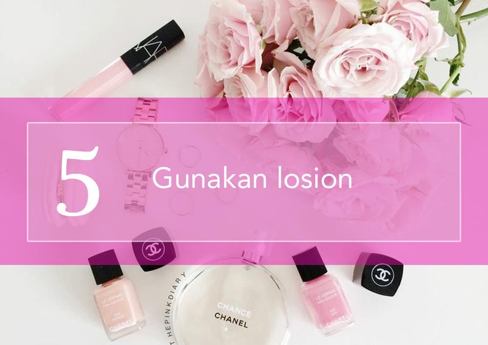 Ambil sedikit lotion lalu oleskan pada rambutmu. Menggunakan lotion akan membuat rambutmu tetap lembut selama kamu tidur.