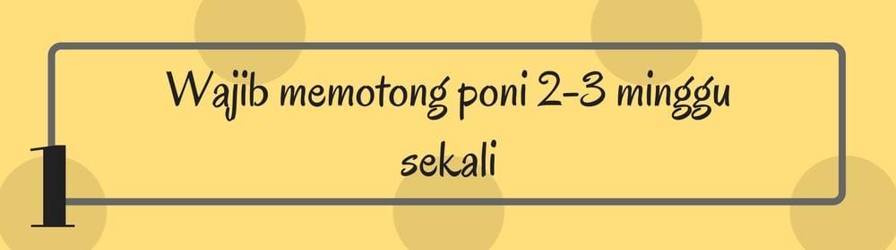 Nah, untuk mempunyai poni yang bagus, kamu ternyata harus merawatnya dengan cara memotong ponimu 2-3 minggu sekali lho. Hal ini perlu dilakukan untuk menjaga panjang poni tetap terlihat bagus dan nggak menusuk mata.