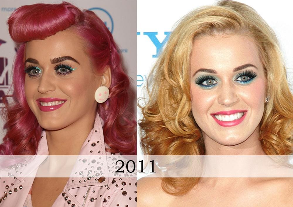 Katy memang gemar mengenakan rambut palsu berwarna-warni namun tak jarang juga ia mengecat rambutnya dengan warna-warna yang terang. Di Tahun 2011, Katy melakukan dua perubahan besar. Di bulan Juli Katy mengecat rambutnya menjadi pirang kemudian di bulan November ia beralih ke warna pink.