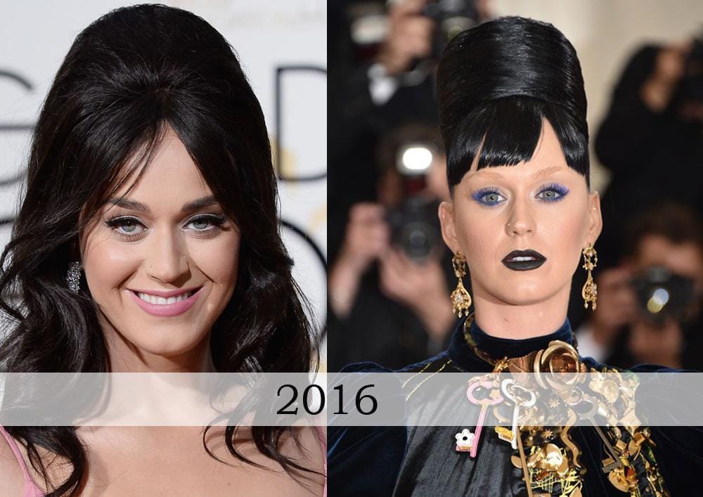 Half up do ala Amy Winehouse mungkin menjadi inspirasi Katy saat menghadiri acara Golden Globes. Ia tampil subtle dengan rambut berwarna hitam dan riasan berkesan lembut. Lalu pada bulan Mei di pertunjukkan Met Gala, Katy tampil dengan gaya rambut beehive dan alis yang diwarnai pirang serta bulu mata berwarna biru.