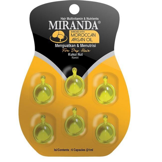Miranda Hair Vitamin kaya akan kandungan moroccan argan oil yang dapat bekerja secara optimal agar membuat rambut menjadi lebih sehat dan kuat dengan memperbaiki tekstur rambut.