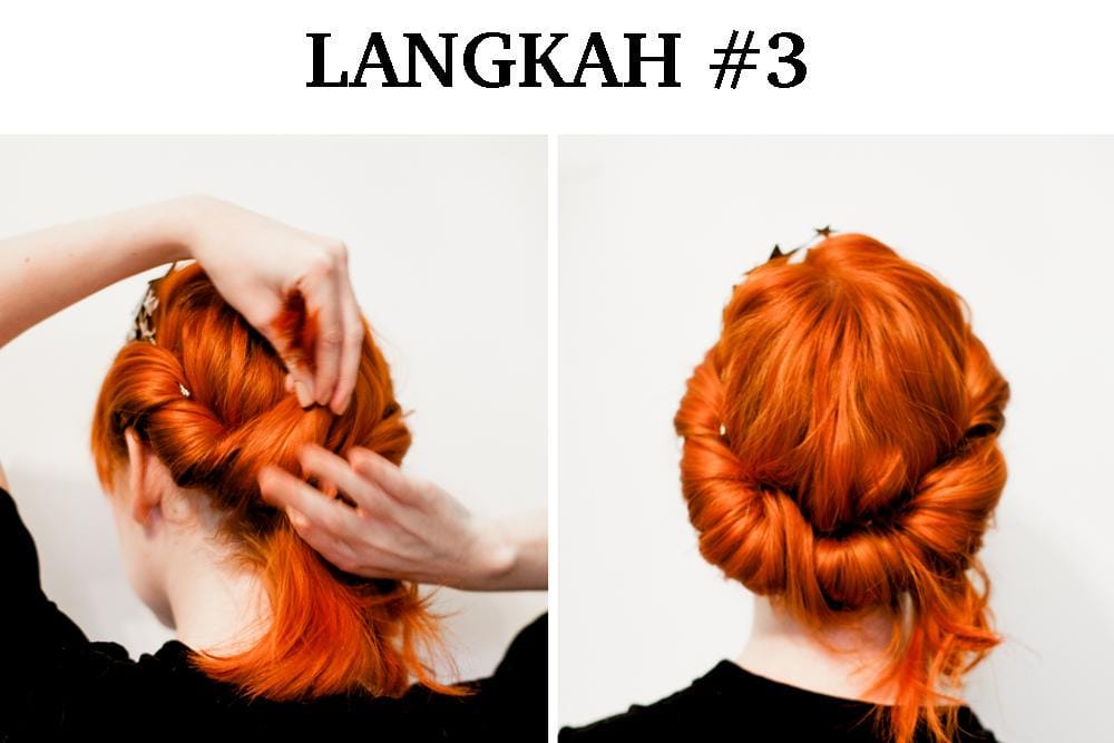 2. Kamu bisa kencangkan dengan bobby pin, kemudian gulung kembali rambutmu ke dalam headband