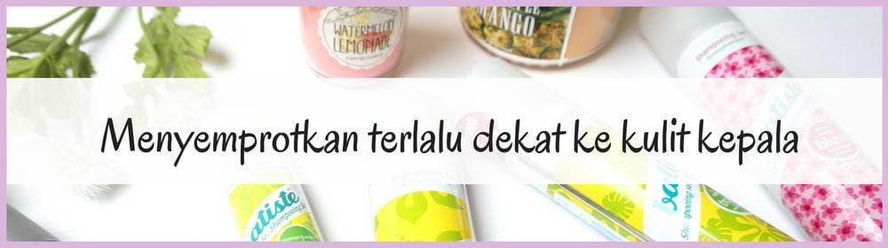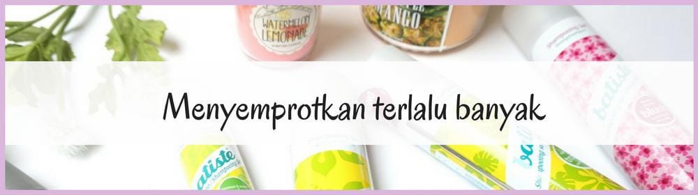 Ini adalah kesalahan umum yang paling sering dilakukan. Menyemprotkannya dalam jumlah banyak tidak akan menghilangkan minyak pada kulit kepala namun justru akan membuatnya semakin lepek karena residu produk yang menumpuk. Jadi, gunakan secukupnya saja yah, Bela!