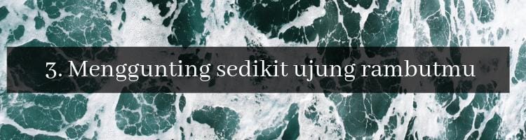 Kalau tips yang satu ini memang tidak memiliki hubungan dalam pertumbuhan rambut baru, namun jika kamu menggunting sedikit demi sedikit ujung rambutmu maka dapat membantu rambut baru untuk bisa tumbuh dengan sempurna.