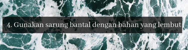 Ternyata tekstur kain pada sarung bantal juga memiliki pengaruh bagi pertumbuhan rambut baru. Jika sarung bantalmu memiliki tekstur yang kasar, setiap helai rambutmu dapat menjadi lebih rusak. Maka itu dianjurkan untuk memilih sarung bantal berbahan satin atau sutera.