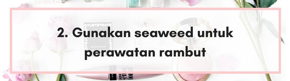 Tahukah kamu kalau di Jepang, banyak perempuan lebih mengandalkan seaweed untuk merawat rambut? Ya, mereka memilih untuk keramas menggunakan olahan rumput laut dibandingkan sampo biasa. Kandungan nutrisi dan mineral di rumput laut dipercaya mampu menjaga kekuatan rambut dan melancarkan proses hidrasi dengan baik. Wah, patut dicontoh nih!