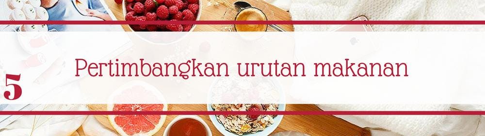 Mulai sesi makanmu dengan menyantap sayuran dan protein, kemudian selesaikan dengan karbohidrat untuk menjagamu tetap kenyang. Urutan seperti ini juga membantu mencegah meningkatnya level gula darah dengan cepat dalam tubuh. Kalau makan dengan urutan yang terbalik, rasa kenyangmu nggak akan bertahan lama dan kamu akan cepat merasa lapar.