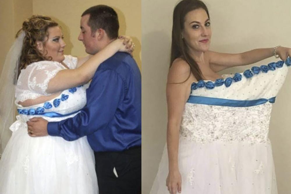 4. Wanita ini berpose dengan gaun pengantinnya yang lama dan sekarang ia berhasil menurunkan berat badannya sebanyak 89 kg.