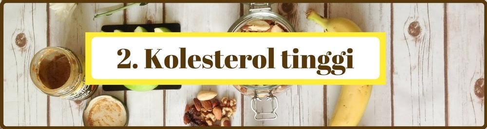 Kolesterol adalah zat lemak yang diproduksi secara alami oleh tubuh. Kolesterol juga dapat masuk ke tubuh melalui makanan yang mengandung kolesterol. Kolesterol sebenarnya memiliki banyak manfaat di dalam tubuh, tetapi kolesterol akan menjadi masalah jika kadar di dalam tubuh terlalu tinggi. Hindari makanan yang mengandung kolestrol seperti gorengan, durian, daging kambing, seafood (kecuali ikan) santan dan lain-lain.
