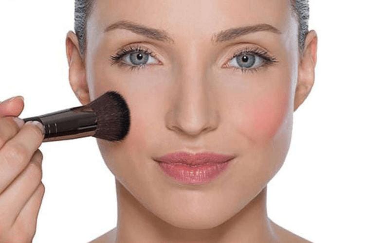 9. Ambil <i>blush on</i> warna pink atau <i>peach </i>untuk dipoleskan ke pipi.