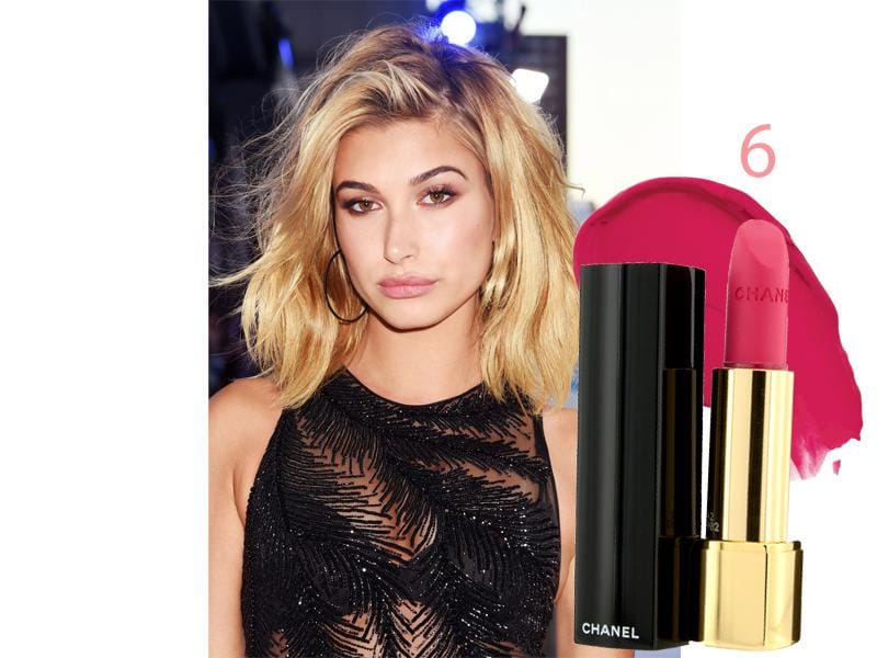 Aplikasikan lipstik keluaran Chanel, sehingga Hailey Baldwin terlihat anggun dengan lipstik matte yang intens dan riasannya terlihat mewah dan lembut.