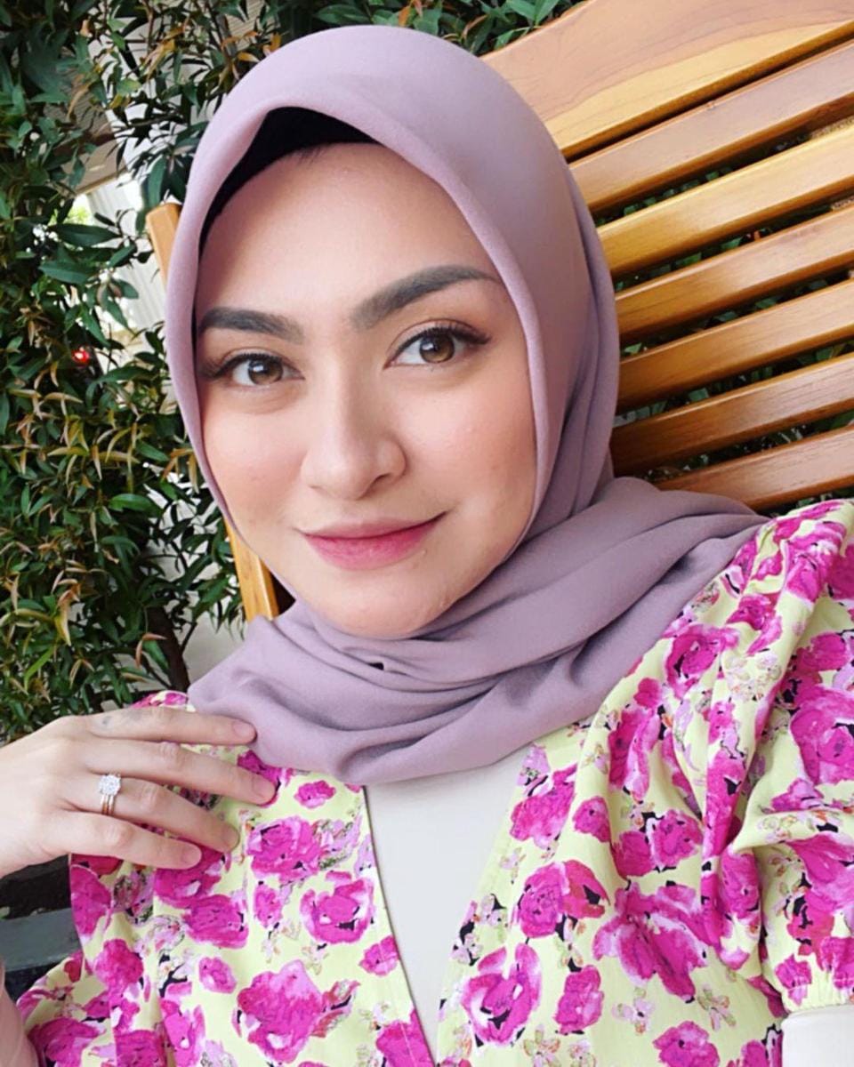 1. Istri dari Sule, Natalie Holscher, memilih riasan feminin dengan pulasan lipstik berwarna pink serta alis yang <i>on fleek. </i>
