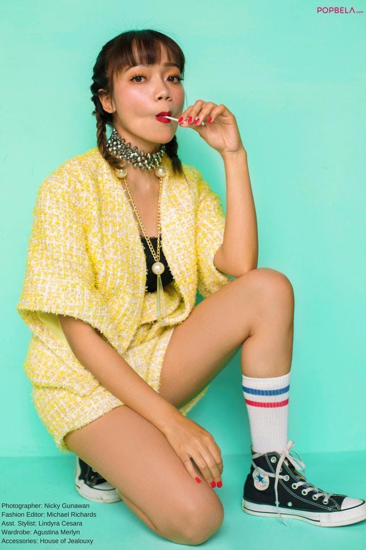 "Aku kalau lagi manggung pengen selalu kelihatan wah. Jadi biasanya aku ngeliat Karen O dari Yeah Yeah Yeahs atau Hayley Williams dari Paramore untuk gaya makeup. Tapi, kayaknya aku harus menemukan satu yang jadi ciri khas aku sih, tapi masih nyari-nyari nih."