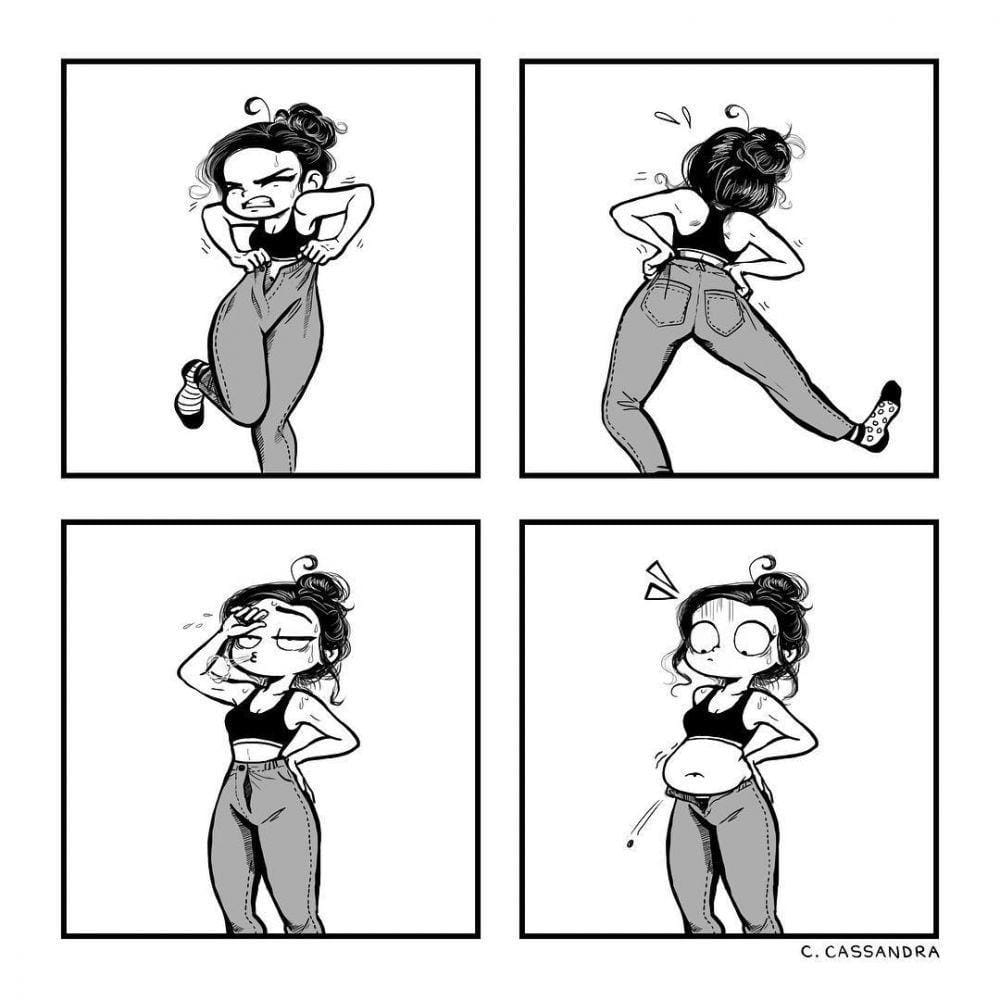 Ilustrator Cassandra Calin lewat Instagram pribadinya @cassandracalin mencoba menggambarkan gimana perjuangan perempuan untuk bisa mendapatkan penampilan badai ini. Yuk, coba kita simak ilustrasinya!