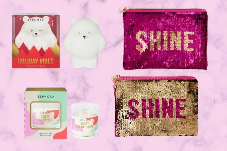 Nggak cuma makeup, skincare, dan body care, seperti tahun-tahun sebelumnya Sephora juga turut menghadirkan koleksi pernak-pernaik yang super cute. Ada Bear Night Light (Rp231.000), diffuser berbentuk beruang berwarna putih, yang juga bisa mempercantik ruangan. Kamu juga bisa memilih Super Soft Night Mask (Rp137.000), Makeup Pouch (Rp201.000) dengan detail sequined berwarna pink dan emas yang super mewah, atau Wellness Scented Candle (Rp189.000) dengan aroma vanilla yang cocok untuk dipakai di kamar.