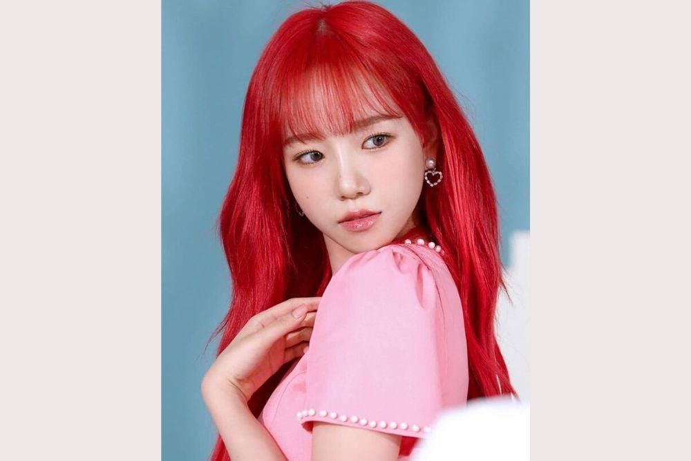 5. Baru berusia 18 tahun, Yuri IZ*NE memiliki wajah yang menggemaskan sekali. Penampilannya makin <i>standout</i> ketika hadir dengan warna rambut yang merah.