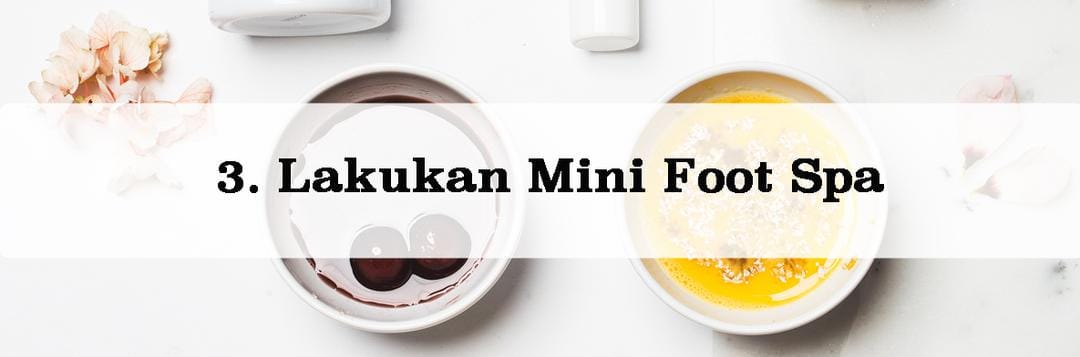 Setelah lelah beraktifitas di weekdays, manjakan kakimu dengan foot spa treatment. Ternyata caranya cukup mudah, cukup rendam kaki dalam baskom berisi air hangat yang telah dibubuhkan foot salt. Kamu juga bisa menambahkan sedikit essential oil guna melembutkan dan mengharumkan kakimu. Setelah itu, sikat tumitmu lalu bilas kemudian keringkan dengan handuk dan gunakan foot cream atau foot spray agar kaki terasa lebih lembut dan harum.