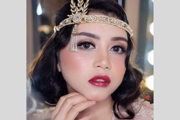 Buat kamu yang ingin terlihat glamor sekaligus anggun, makeup a la Sally Adelia ini bisa banget jadi inspirasi. Padukan lipstik merah terang, blush on berwarna senada, dan riasan mata yang natural. So pretty!