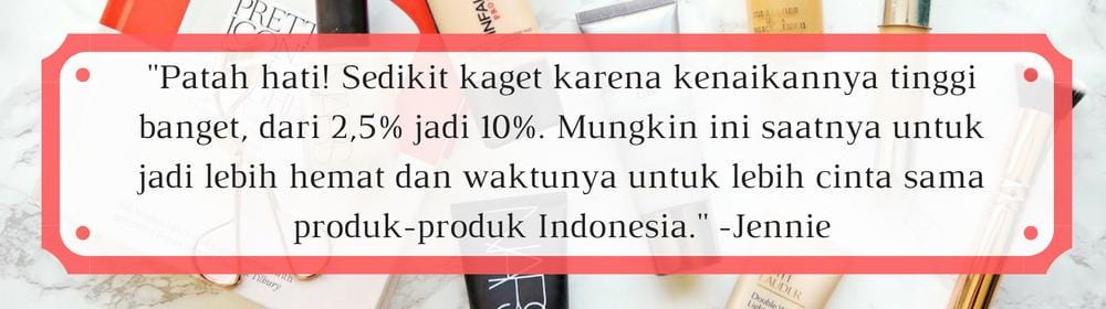 Pemerintah belum lama ini mengumumkan kenaikan pajak suatu barang alias PPh atau pajak penghasilan terhadap 1.147 produk. Pajak yang tadinya berada di angka 2,5% kini naik menjadi 10%. Kabarnya, hal ini dilakukan untuk membatasi produk impor yang membuat berkurangnya neraca perdagangan Dari sekian banyak daftar barang yang terkena kenaikan pajak, salah satu di antaranya adalah kosmetik impor, termasuk di antaranya sabun, sampo, dan barang konsumsi lainnya. Kebijakan ini pun akan segera berlaku tujuh hari setelah ditandatangani.