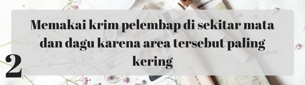 Melanjutkan tips di atas, Ssin juga menyampaikan jika kita perlu memakai pelembap di area mata dan dagu untuk mencegah makeup yang cracking..