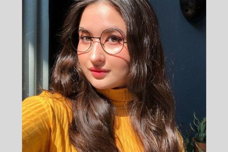 1. Bergaya a la <i>nerd</i> dengan menggunakan kacamata, Stephanie terlihat sangat manis.