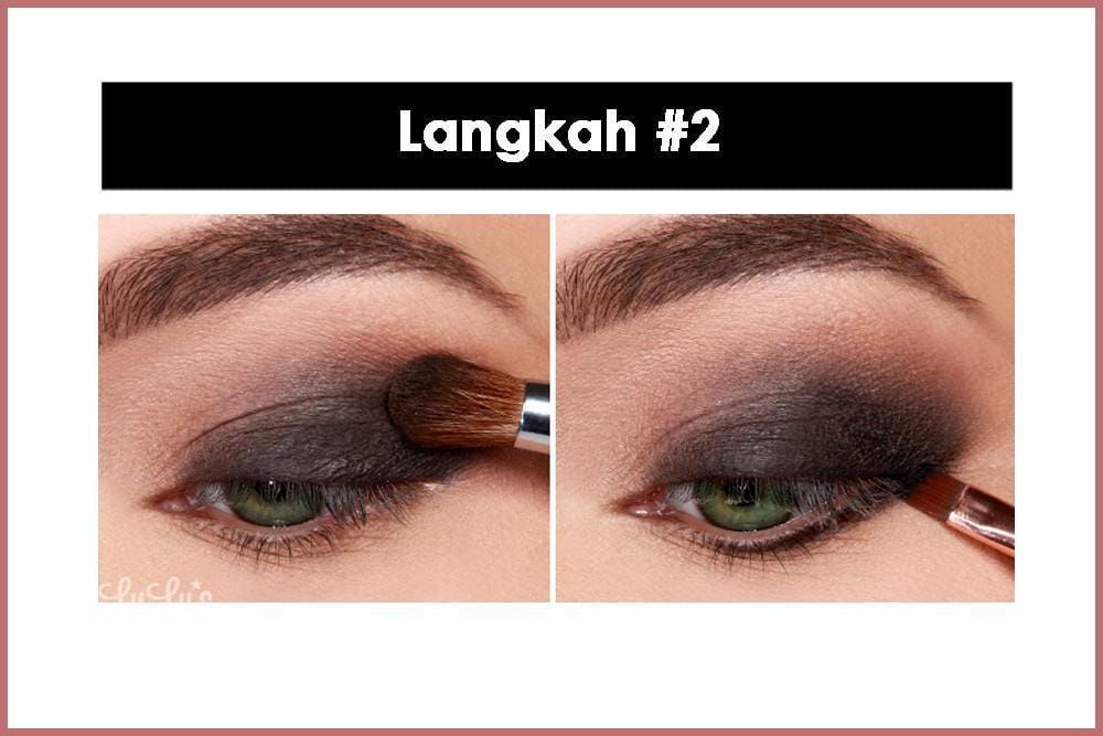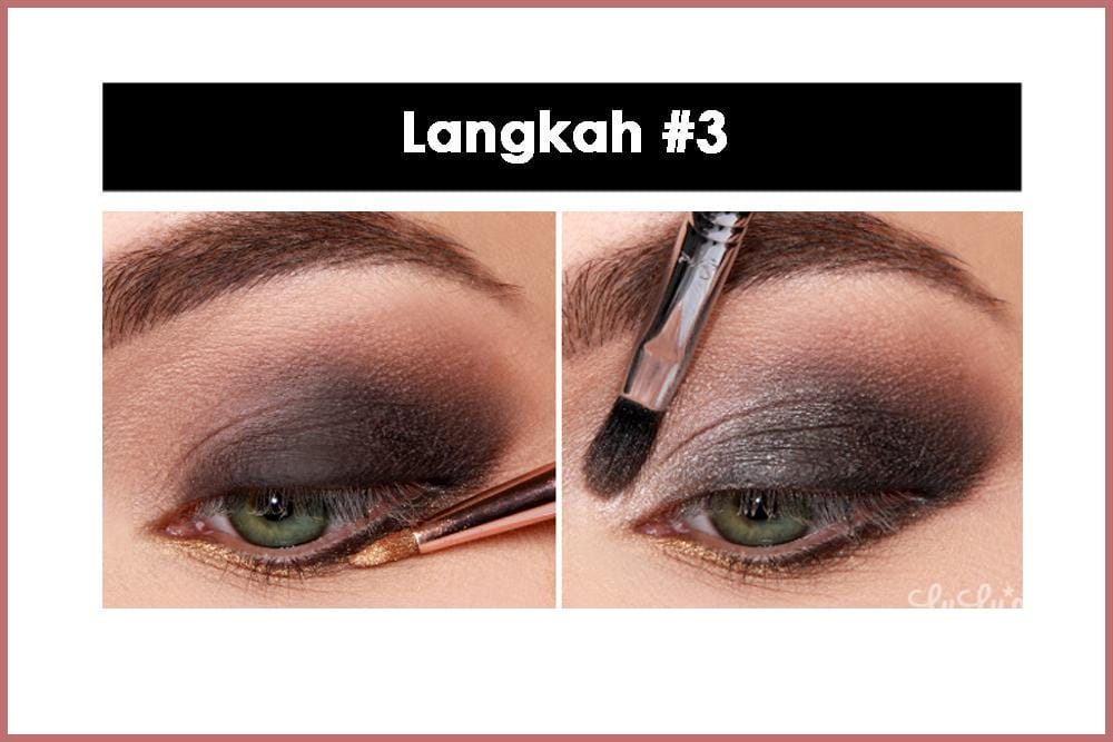 Langkah pertama yang harus kamu lakukan, pilihlah warna netral sebagai base eyeshadow di kelopak mata Selanjutnya gunakan pointbrush dan pilih warna hitam untuk untuk membingkai mata, aplikasikan di bagian ujung kelopak matamu.