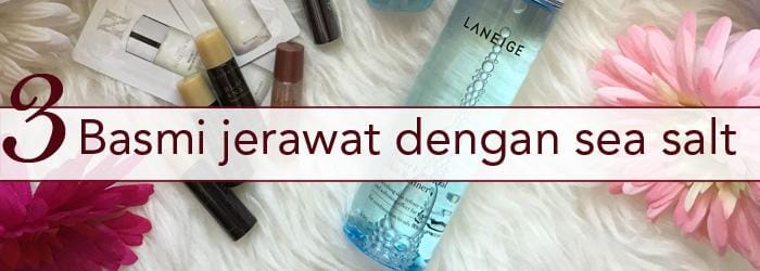 Sea salt atau garam memiliki banyak manfaat, di antaranya yaitu sebagai anti bakteri dan mengatasi kelebihan minyak serta jerawat di wajah. Campurkan garam dan air, lalu oleskan pada wajah dan biarkan selama 15 menit. Bilas dengan air hangat, lanjutkan dengan air dingin untuk menutup pori.