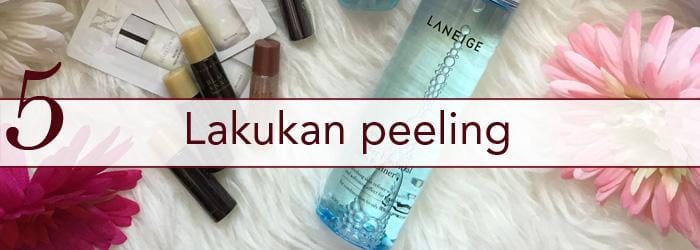 Apapun jenis kulitmu, pastikan untuk selalu melakukan peeling. Mengangkat sel kulit mati 1-2 kali seminggu akan membuat kulitmu bebas dari komedo, terasa lebih lembut, dan lebih cerah. Kamu bisa membuat DIY peel dengan mencampurkan 2 sendok teh baking soda, 1 sendok teh air, dan sedikit air lemon.