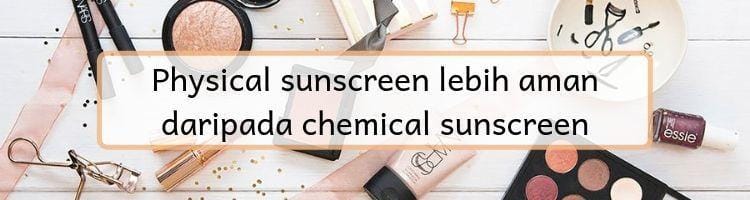 Sebagian ahli lebih memilih penggunaan physical sunscreen ketimbang chemical sunscreen. Alasannya adalah tabir surya tersebut dapat melindungi lebih efektif, serta aman untuk digunakan oleh berbagai usia. Sedangkan jika menggunakan chemical sunscreen, perlu menunggu 15-30 menit untuk menunggu tabir surya itu mulai bekerja melindungi kulit.