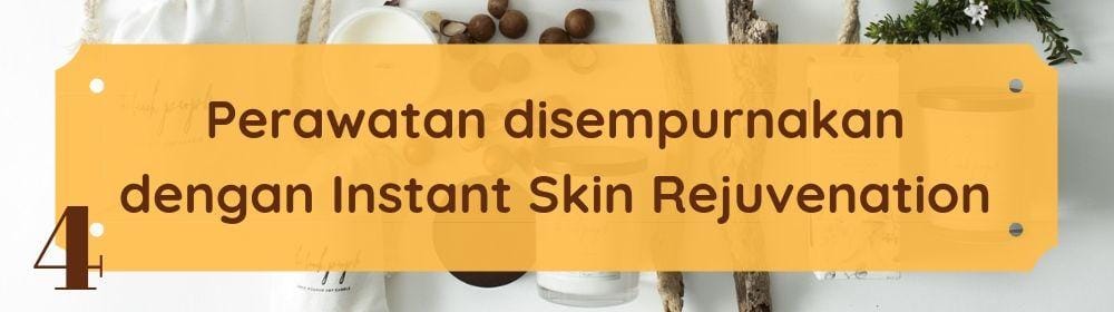Setelah melakukan 11 tahapan signature facial modern, perawatan akan dilanjutkan dengan Instant Skin Rejuvenation untuk melembapkan dan mengecilkan pori-pori serta membuat wajah terlihat lebih cerah.