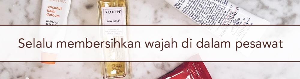 “ Aku selalu, selalu, selalu membersihkan wajahku ketika berada di dalam pesawat. Menurutku ini sangat membantu melawan wajah kusam karena berada di penerbangan yang lama. Aku menyukai Koh Gen Do spa water wipes. Produk ini sangat bagus dalam hal membersihkan semuanya termasuk maskara. Kulitku terasa sangat segar setelah menggunakannya dan tidak meninggalkan residu.”
