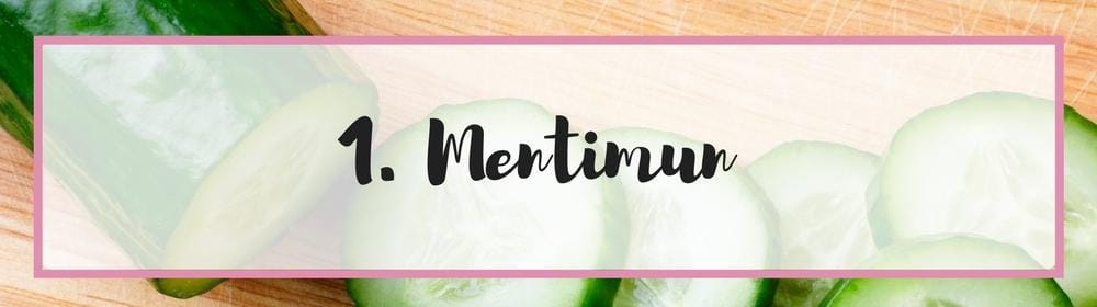 Irisan mentimun bisa kamu gunakan untuk membantu mengurangi sembap atau mata panda. Untuk menu makanan kamu juga bisa menambahkan timun, karena bermanfaat untuk mengurangi jerawat, kulit bersih, dan membuat kulit lebih berkilau. Kandungan silika pada mentimun bisa memproduksi kolagen kulit dan membuat kulit elastis dan awet muda.