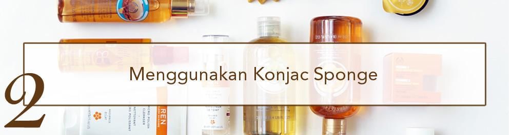 Konjac Sponge diproduksi dari akar tanaman konjac. Sebelum menggunakannya, rendamlah di dalam air hangat selama beberapa menti untuk membuatnya terasa lembut. Lalu dengan gerakan memutar gunakan sponge untuk membersihkan wajah, dimulai dari dahi lalu turn ke area dagu.