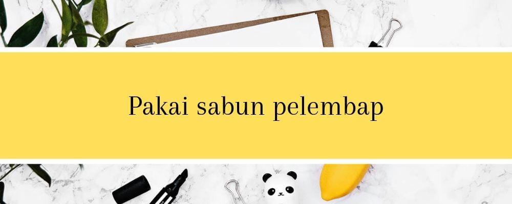 Menggunakan sabun yang benar sangat penting untuk mengobati kulit keringmu. Banyak sabun justru dapat membuat kulitmu jadi kering, karena sabun yang biasa kita pakai biasanya terbuat dari bahan natrium. Penggunaan sabun jenis ini akan membuat kulit kita semakin kering karena sifat natrium yang merusak kelembapan pada kulit. Coba pakailah sabun yang mengandung pelembap dengan kandungan bahan minyak esensial yang dapat menjaga kelembapan kulitmu.