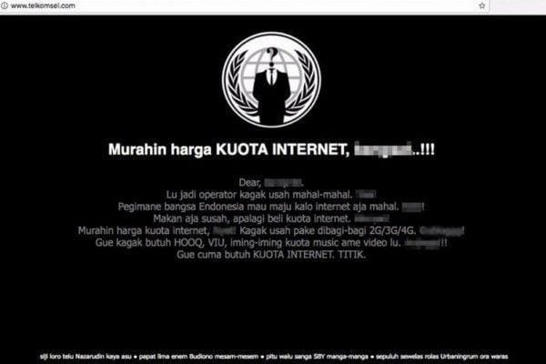 Salah satu ulah hacker yang cukup ramai di Indonesia terjadi pada tahun 2017. Situs resmi Telkomsel diambil alih oleh hacker yang memprotes mahalnya harga kuota internet. “Pegimane bangsa Endonesia mau maju kalo internet aja mahal,” tulisnya.