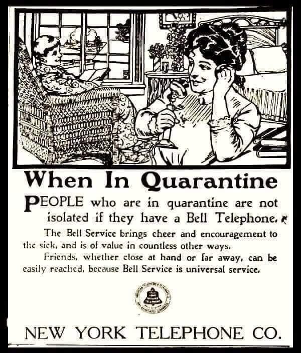3. Meskipun berada di rumah, komunikasi dengan orang luar harus tetap berjalan untuk berbagi informasi dan mengurangi rasa bosan. Belum ada internet seperti saat ini, perusahaan telepon menjadi primadona kala itu karena bisa menghubungkan orang-orang yang sedang menjalani karantina di rumah masing-masing