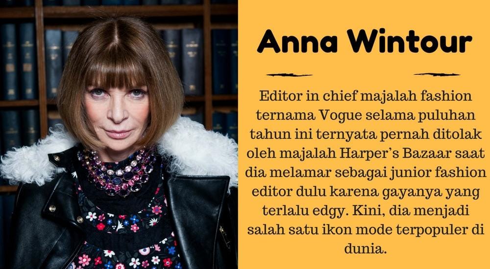 Orang yang paling mudah menyerah adalah mereka yang merasa ciut nyalinya ketika menghadapi penolakan. Padahal, semakin banyak tantangan dan masalah dalam karier, maka seharusnya semakin kuat mentalmu untuk terus berkarya. Bahkan, banyak ilmuwan dan tokoh dalam ilmu pengetahuan yang penemuannya dikenal dan digunakan setelah mereka melalui banyak kegagalan. Meski kamu perempuan, tetap nggak ada alasan untuk menyerah. Berikut ini adalah para perempuan yang terus maju dan sukses setelah menghadapi penolakan dalam hidupnya.