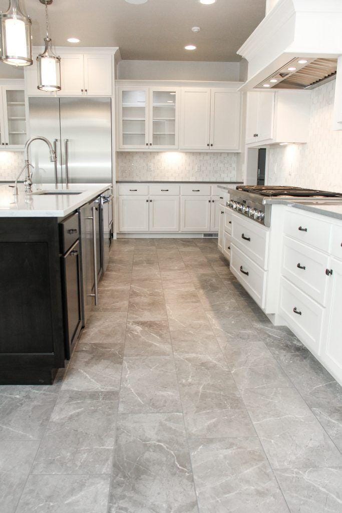 1. Memilih ubin abu-abu, akan membuat dapur terkesan lebih elegan dan tidak gampang terlihat kotor