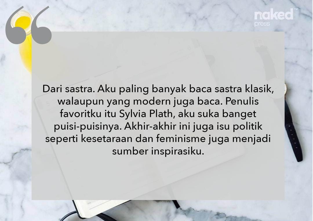 Bagaimana cara Ajeng menggabungkan sastra dengan fashion?
