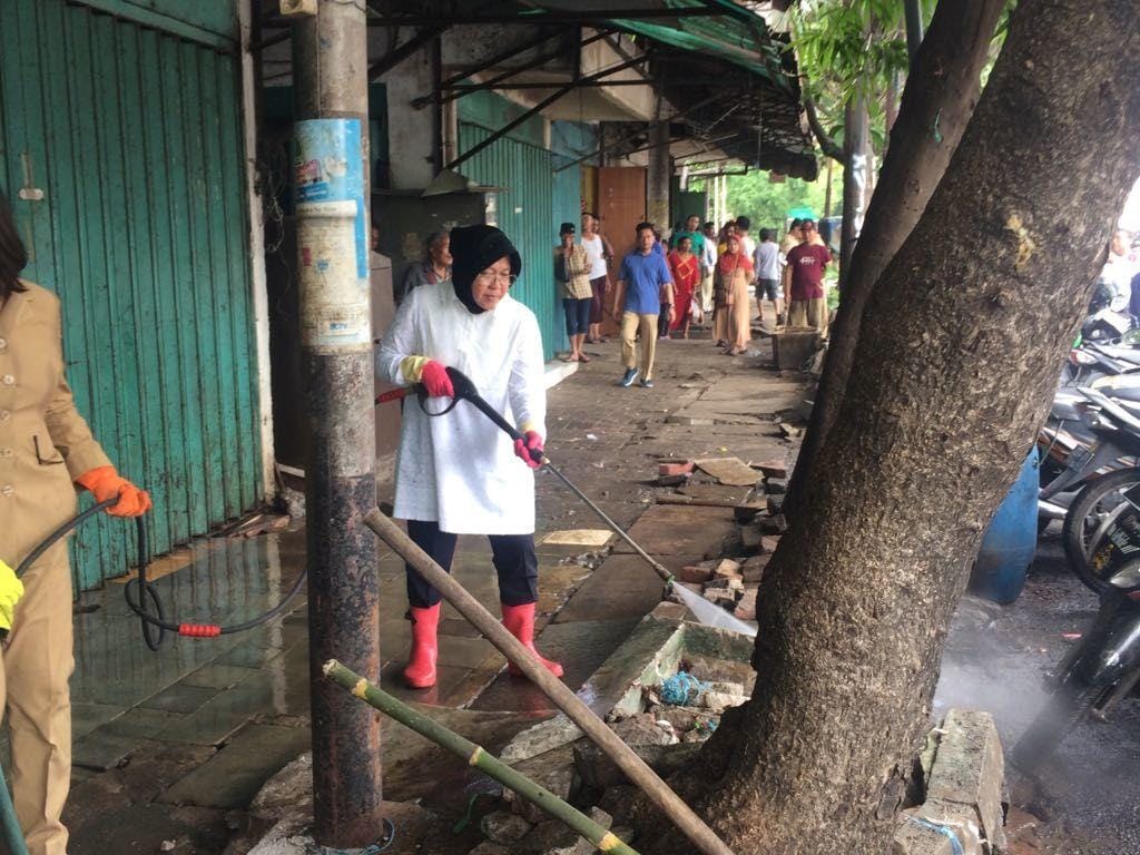 5. Bersama Satgas Dinas PU Bina Marga Dan Pematusan (DPUBM-P), Risma pernah terlihat ikut membersihkan kawasan bekas Bioskop Pratama, Jalan Dinoyo Surabaya