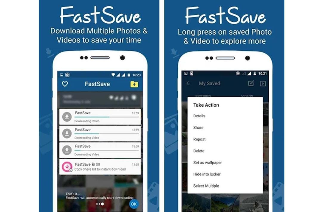 Seperti namanya, aplikasi ini dapat mengunduh dan menyimpan konten dari Instagram dengan cepat, baik itu foto maupun video. Jadi, aplikasi ini akan menyimpan seluruh konten yang diunduh ke dalam dashboard-nya. Kemudian, kamu dapat memilih untuk menyimpannya ke dalam galeri gawai atau membagikannya lagi media sosialmu. Menariknya, aplikasi ini memiliki loker sendiri sehingga kamu dapat menyimpan konten tersebut secara rahasia! Namun kekurangannya, aplikasi ini bisa mengalami gangguan kapan saja.