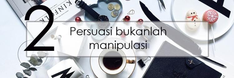 Kadang kala kita melihat persuasi adalah manipulasi dan sekilas nampak sama. Yang menjadi pembeda adalah persuasi itu seperti simbiosis mutualisme, dengan pengertian salaing menguntungkan. Sedangkan manipulasi, tindakan yang memaksa untuk melakukan sesuatu demi kepentingan sendiri.