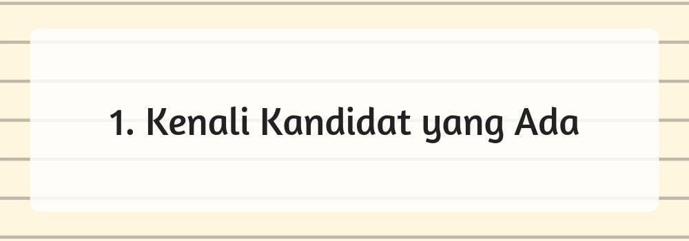 Ada pepatah yang bilang bahwa “Tak Kenal Maka Tak Sayang”. Pepatah tersebut juga berlaku ketika pilpres. Untuk bisa menemukan kandidat yang jadi pilihan, kamu harus mengenali satu per satu kandidat yang ada. Pahami visi-misinya, kejelasan latar belakang kandidat, program-program kerja yang akan dilakukan, serta info-info yang berhubungan dengan keputusan pilihan kamu.