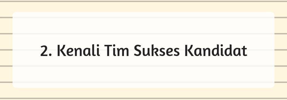 Selain kandidatnya, kenali pula latar belakang orang-orang di tim sukses serta bagaimana sepak terjangnya selama ini. Cek juga strategi seperti apa yang mereka pakai untuk dapat memenangkan kandidat. Bila kamu senang dengan tim suksesnya dan cara kerja yang mereka gunakan, itu bisa menjadi patokanmu dalam memilih presiden.