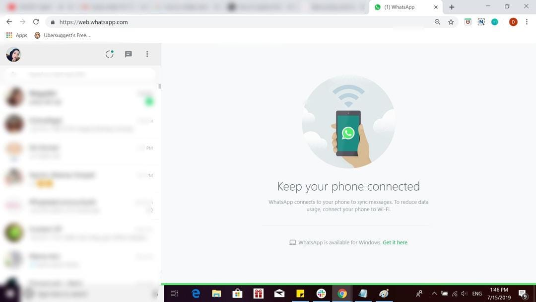 3. Setelah sukses memindai, WhatsApp Web akan terbuka dan menampilkan deretan chat seperti yang ada pada hp-mu.