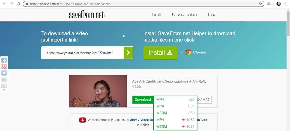 Langkah 3: Di <i>browser, </i>buka situs Savefrom.net untuk mengunduh video yang kamu inginkan